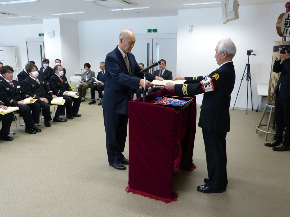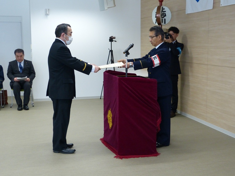 また、各関係機関より表彰を受けた消防団員の表彰式を実施しました。